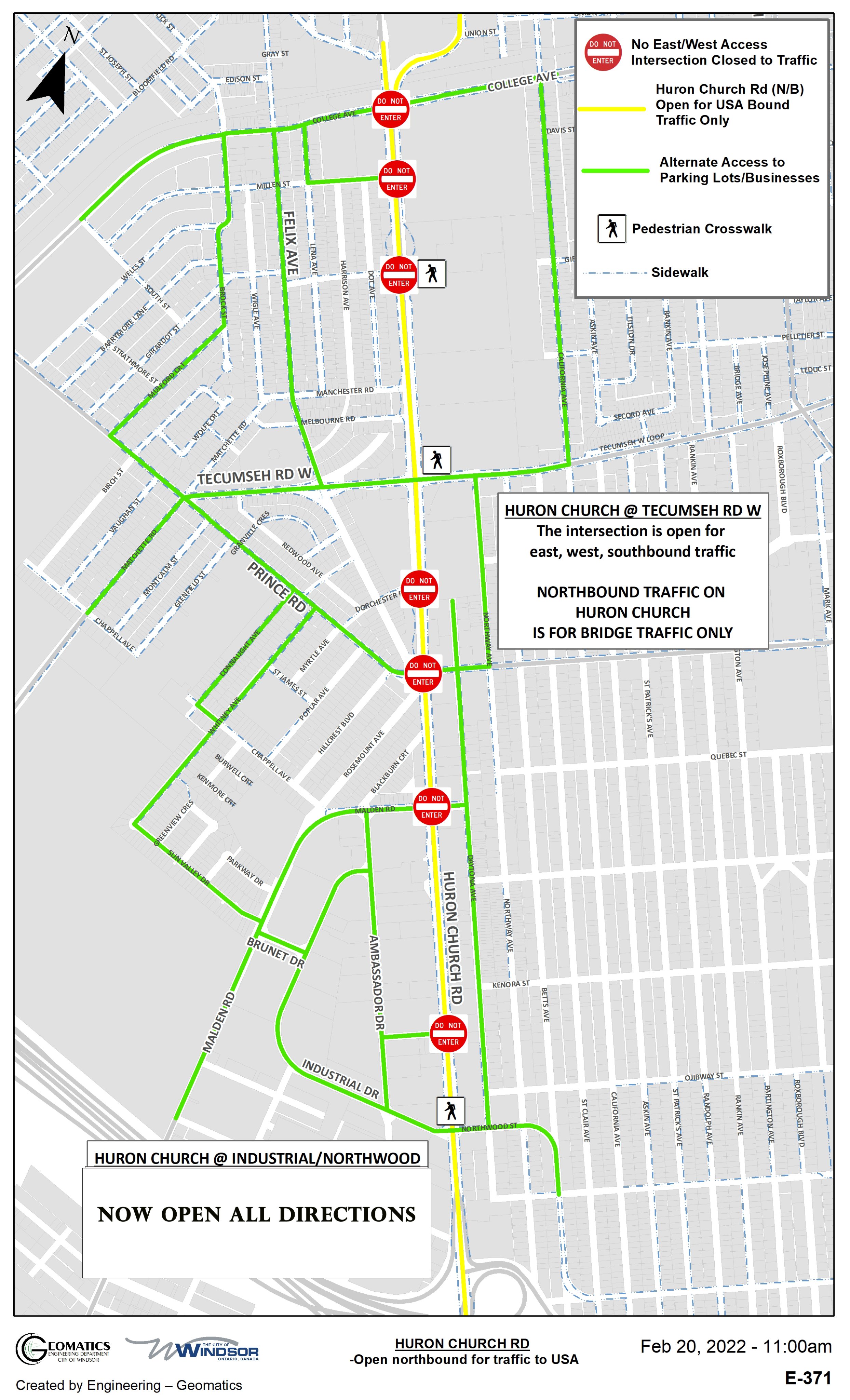 The Windsor Police Service has announced that an east-west access point along Huron Church Road is now open in all directions.