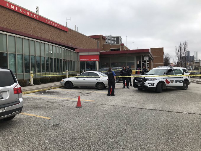 Police tape is up around the 1300 block of Pelissier, near Montrose and around a vehicle in the emergency room parking lot of the Ouellette Campus of Windsor Regional Hospital around 2pm on Monday.