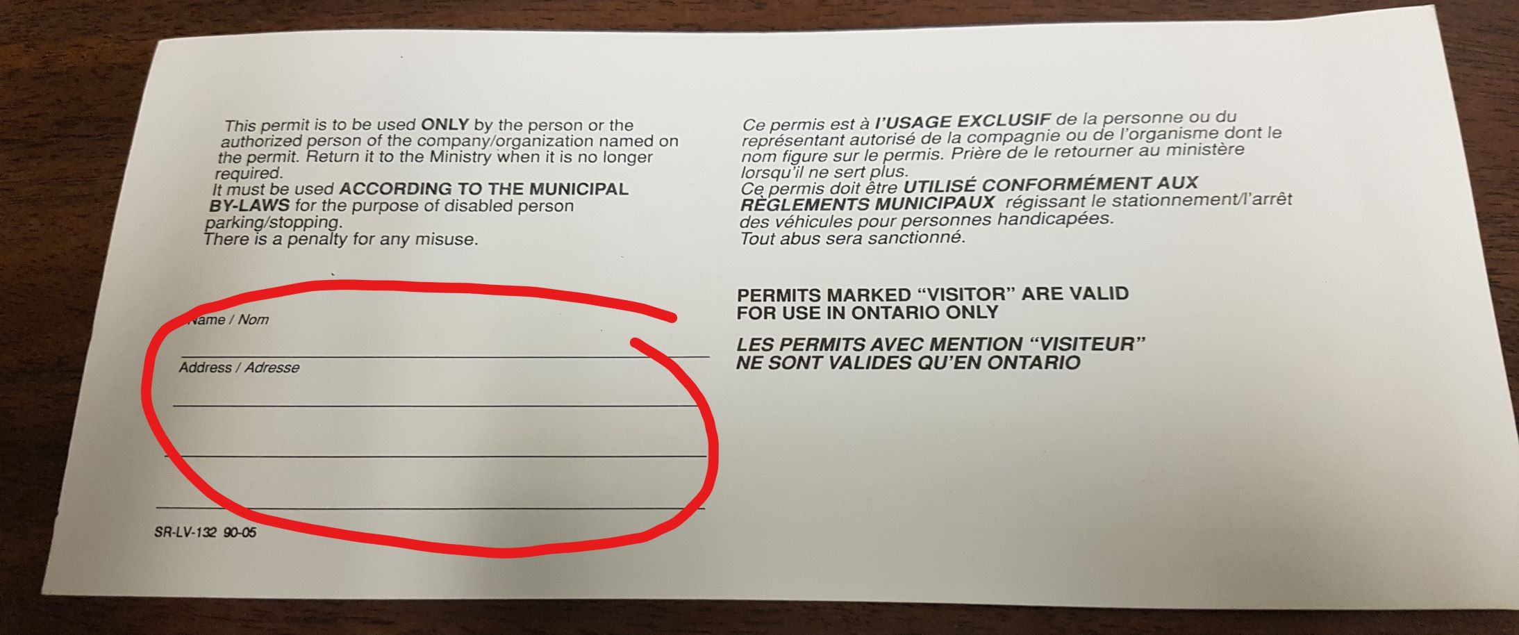 The permit holder name and address are on the back.