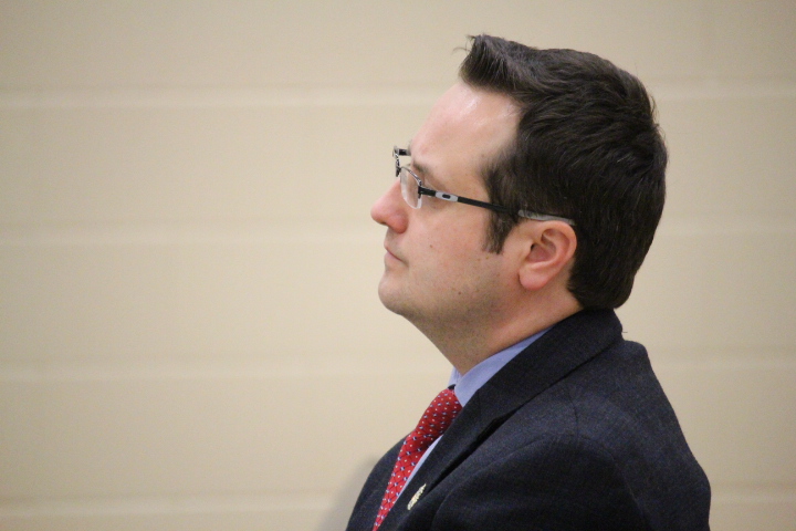 Windsor city councillor Irek Kusmierczyk attends a public information meeting at Eastwood Public School regarding an accommodation review of public schools in the Forest Glade area. Photo taken February 8, 2017. (Photo by Ricardo Veneza)