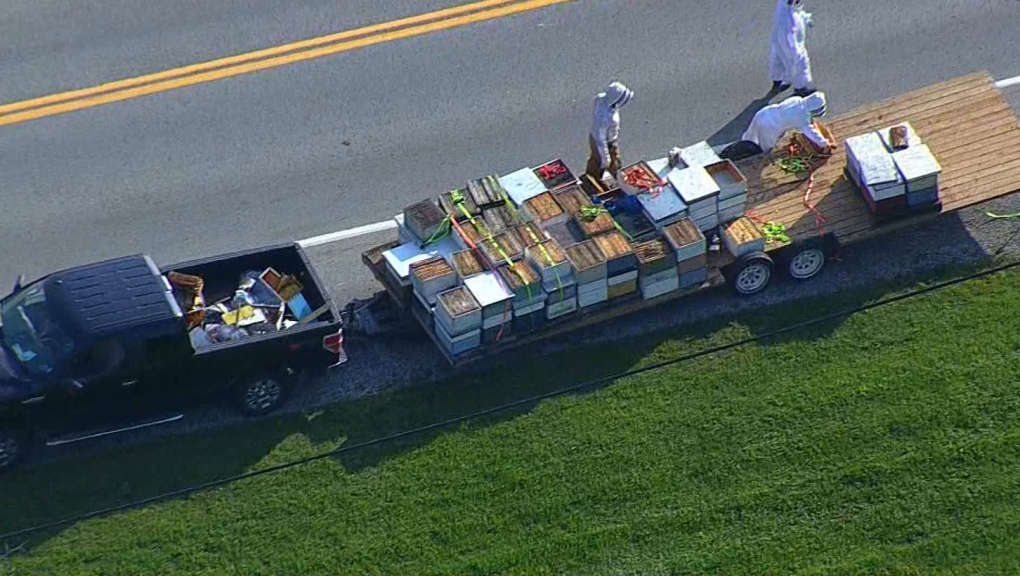 BURLINGTON, ONT. - Police west of Toronto are warning drivers to keep their windows closed as they pass the scene where five million bees fell off a truck.