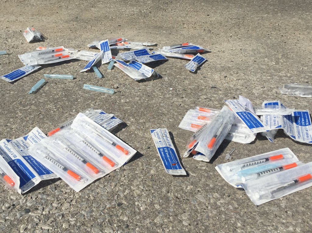 Heather Tremblay lives in the area of Tuscarora and Langlois near the downtown core and says on Tuesday she found 85 syringe needles along the alley near her property.