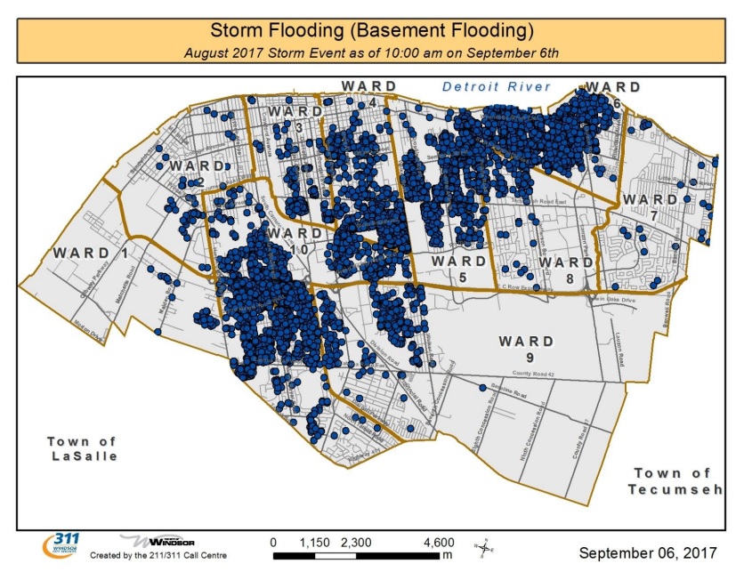 The flooding event in August 2017 followed a heavy downpour in September 2016 that saw more than 1,600 homes flooded across Windsor and Tecumseh as 220mm (8.6 in) of rain fell in a 12 hour period