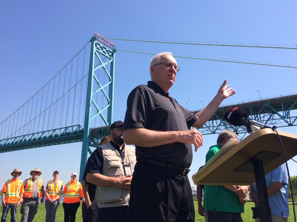 Bridge Spokesperson Stan Korosec says the archeological work will begin immediately. May 24, 2018 (Photo by AM800's Teresinha Medeiros)