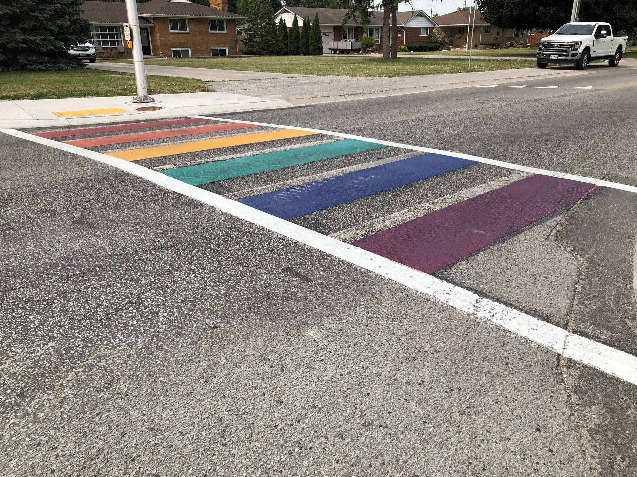 The town held a ribbon cutting ceremony Thursday morning and unveiled its first rainbow crosswalk in recognition of the LGBTQ2S (Lesbian, Gay, Bisexual, Transgender, Questioning and TwoSpirit) and BIPOC (Black, Indigenous and People of Colour) communities.
