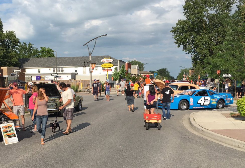Spectators wander Notre Dame St. in Lakeshore for the 16th annual Classic Cruise Car Show at Sunsplash Friday July 14. (Photo by AM800's Gord Bacon)