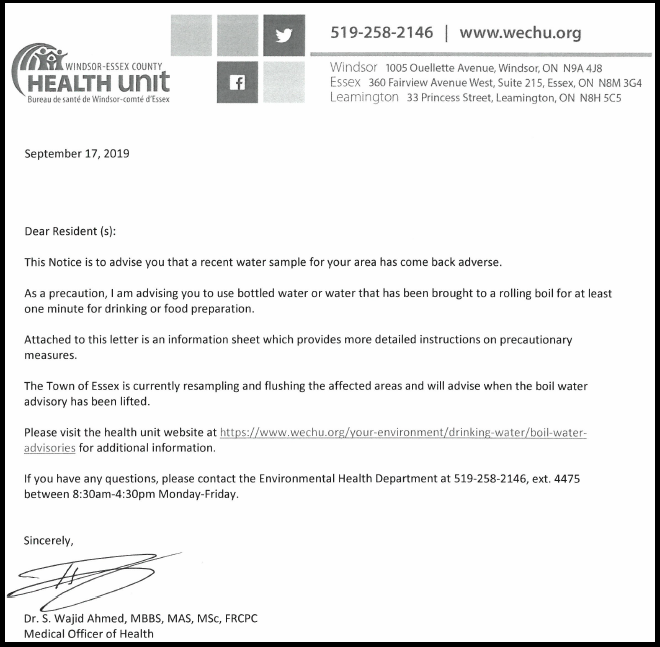 (Letter courtesy of the Windsor Essex County Health Unit)