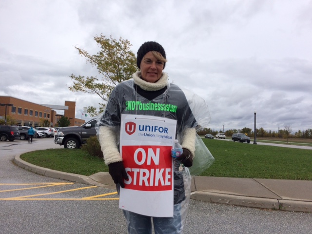 Support staff at the Windsor-Essex Catholic School Board picket outside area schools. October 2016. (Photo by AM800's Teresinha Medeiros)