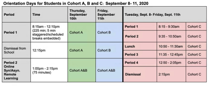According to the board's website, secondary students will return to school based on their cohorts from Sept. 8. to the Sept. 11.