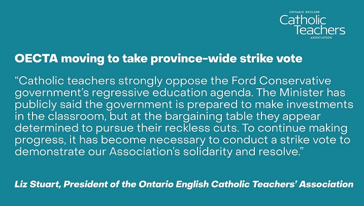 The Ontario English Catholic Teachers Association (OECTA) joins the unions representing both elementary and secondary teachers in making such a move.