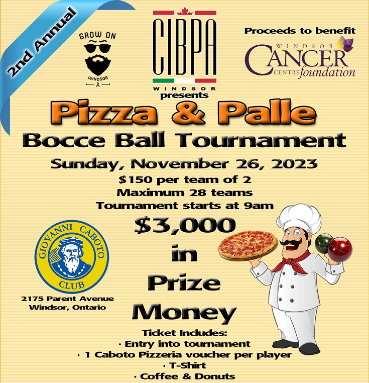 Pizza & Palle will take place on Sunday, Nov. 26, 2023, at Giovanni Caboto Club.
