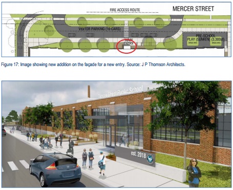 As a result, the public school board's design plans for the new school kept heritage features of the building for the new Giles Campus school.