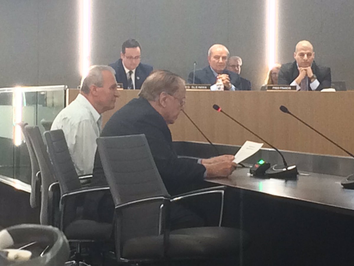 Hilary Payne of Payne Municipal Consultants and developer Abdul Habib present to Windsor City Council on February 4, 2019 (Photo by AM800's Zander Broeckel)
