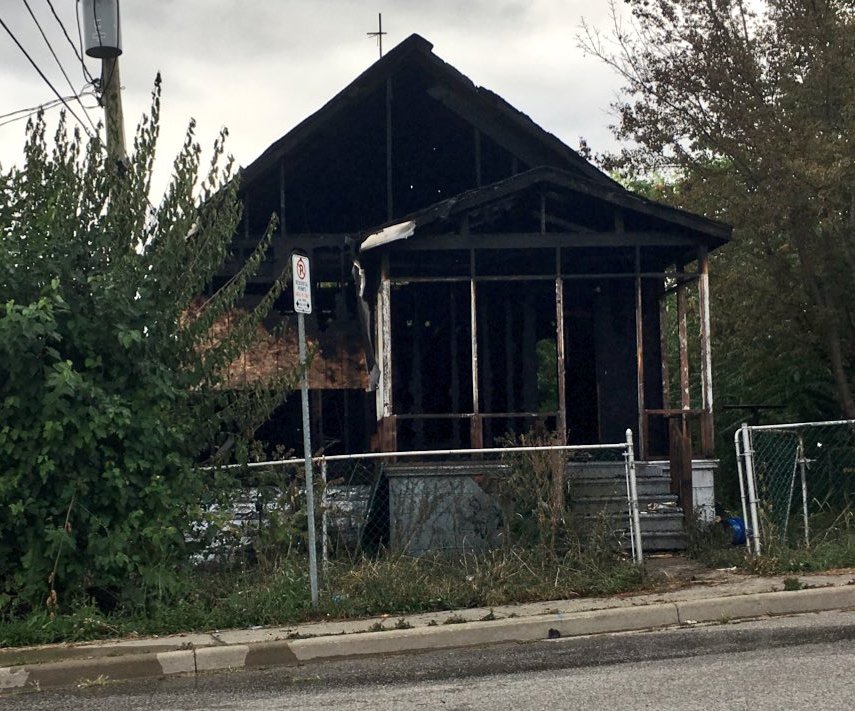 Scene of vacant house fire at 458 Marentette Ave near Brant St. Friday Aug. 4. (Photo by AM800's Gord Bacon)