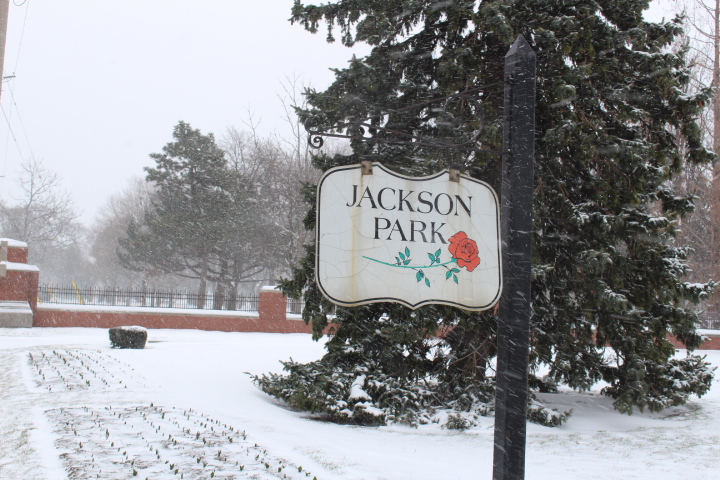 Snow blankets Windsor's Jackson Park on March 13, 2017. (Photo by Ricardo Veneza)