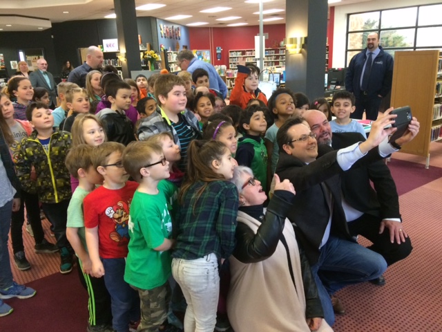 Ward 7 Councillor Irek Kuszmierczyk takes a selfie with students at Forest Glade Library (photo by AM800's Peter Langille)