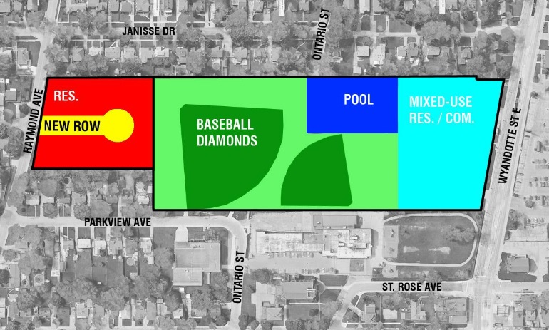 Proposed development on each side of St. Rose Park (Photo courtesy of the City of Windsor)