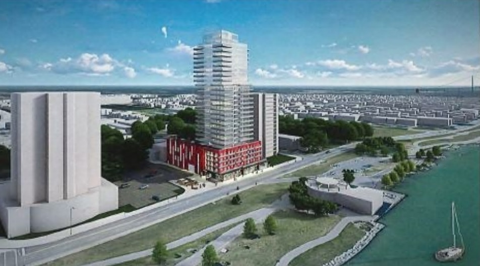 Farhi Holdings is proposing a 28-storey, 166-unit apartment building that would be located on the west-side corner of Riverside and Janette Avenue. Oct. 3, 2022 (Image courtesy of the City of Windsor)