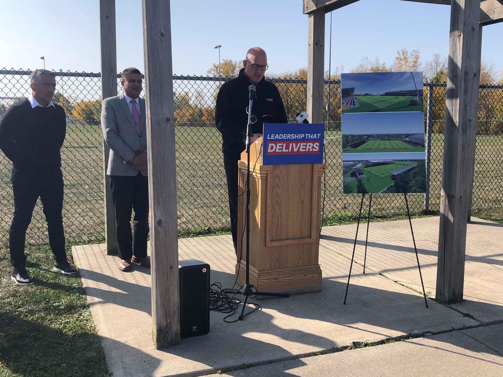 "Of course an artificial turf field would expand the playing season and it would also increase our ability to attract competitive tournaments," he continued. "Jeewan and I are here today to collectively raise our hands and announce that we want the City of Windsor to be that partner and to expand the facilities right here at McHugh field as part of a partnership approach."