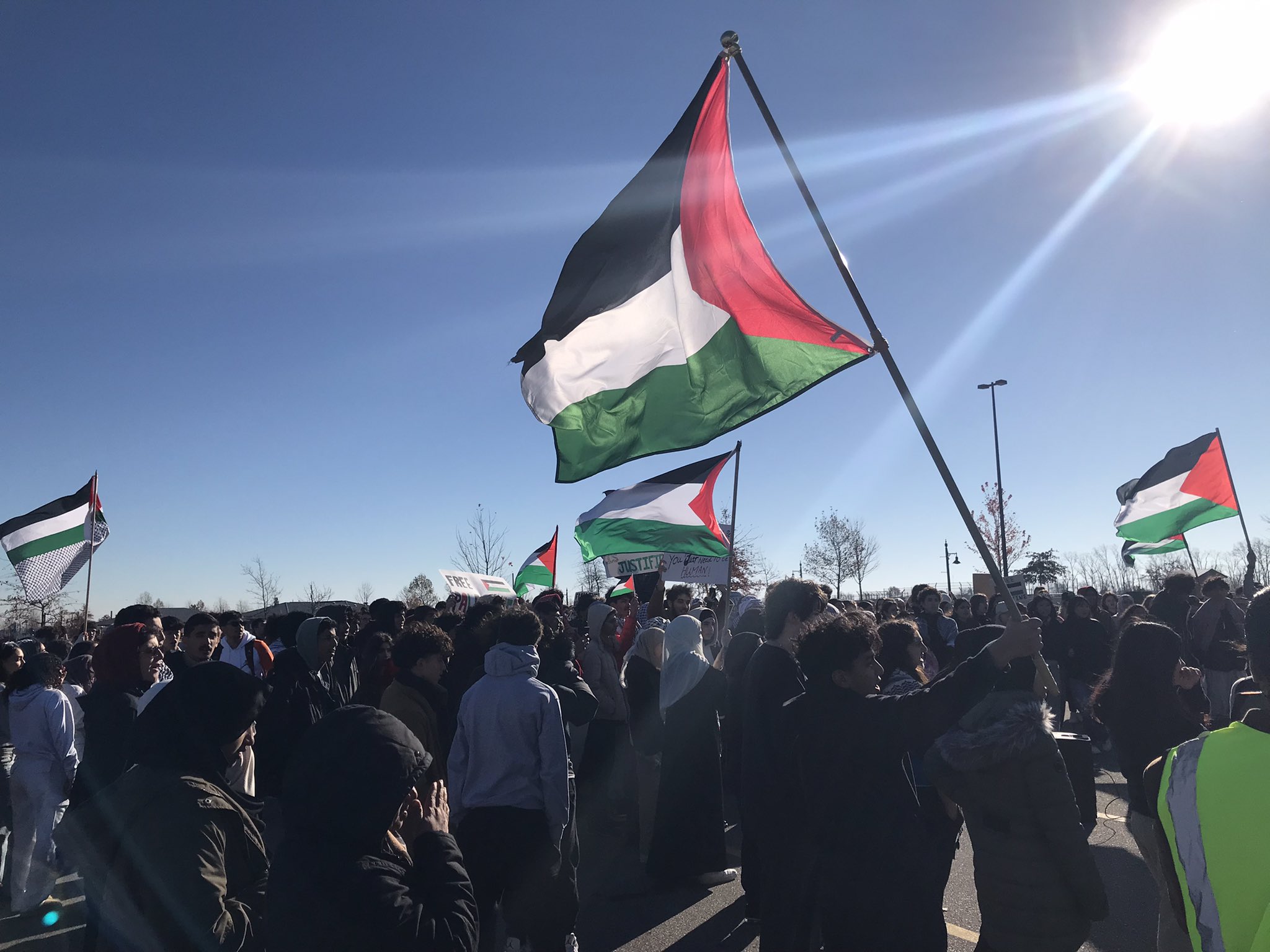 The students walked out Monday morning and met at a parking lot at the Vollmer Centre in LaSalle for a rally in support of Palestine.
