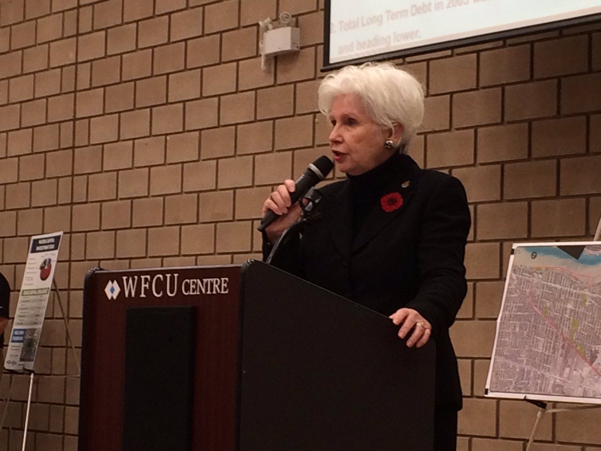 Ward 6 Councillor, Joanne Gignac addresses the crowd at her ward meeting November 10, 2016 (Photo by Zander Broeckel)