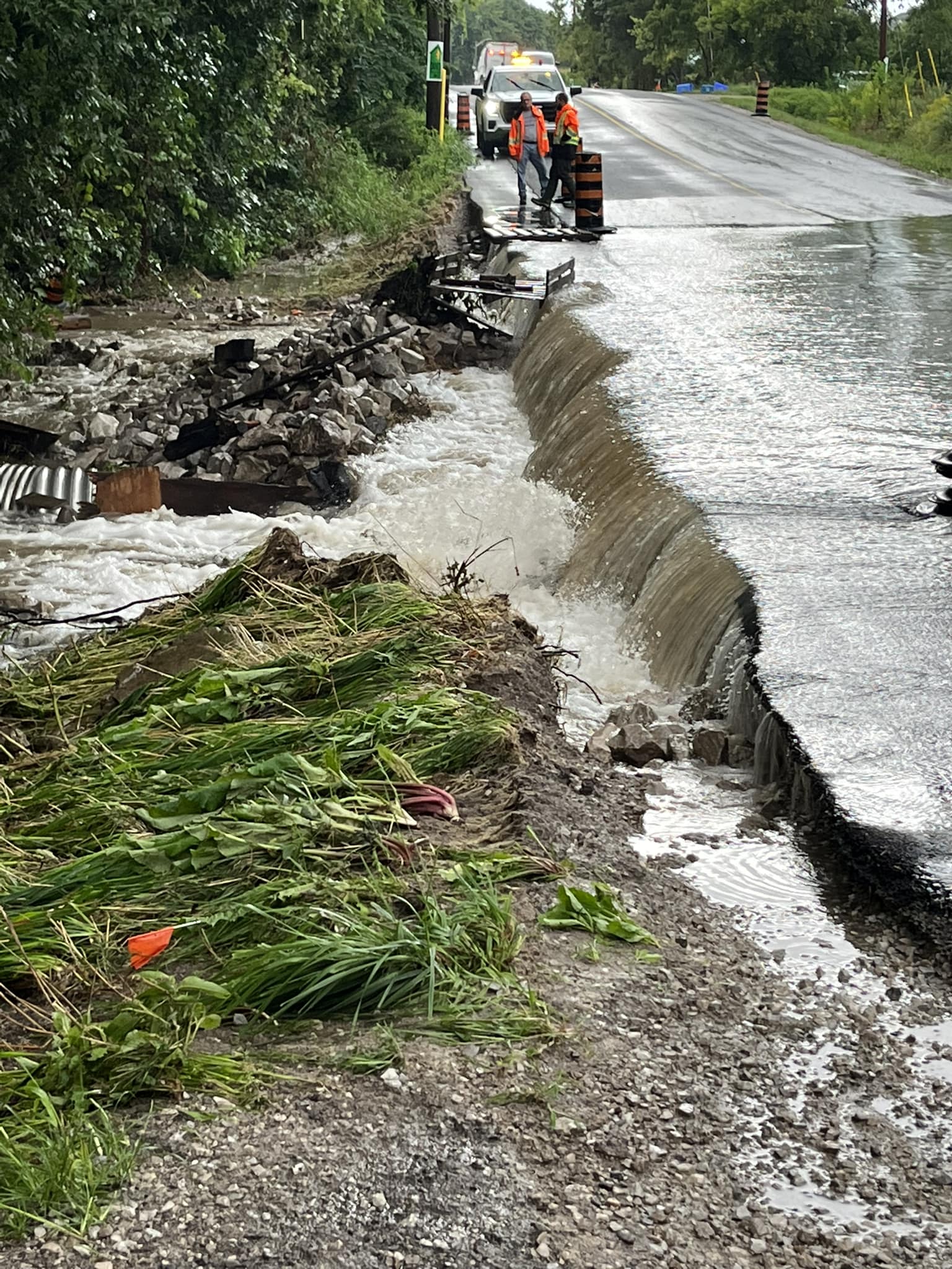 Emergency crews tend to over road flooding on County Road 50 near Star Beach Road in Harrow. Aug. 24, 2023 (Photo: Karen DaSilva)