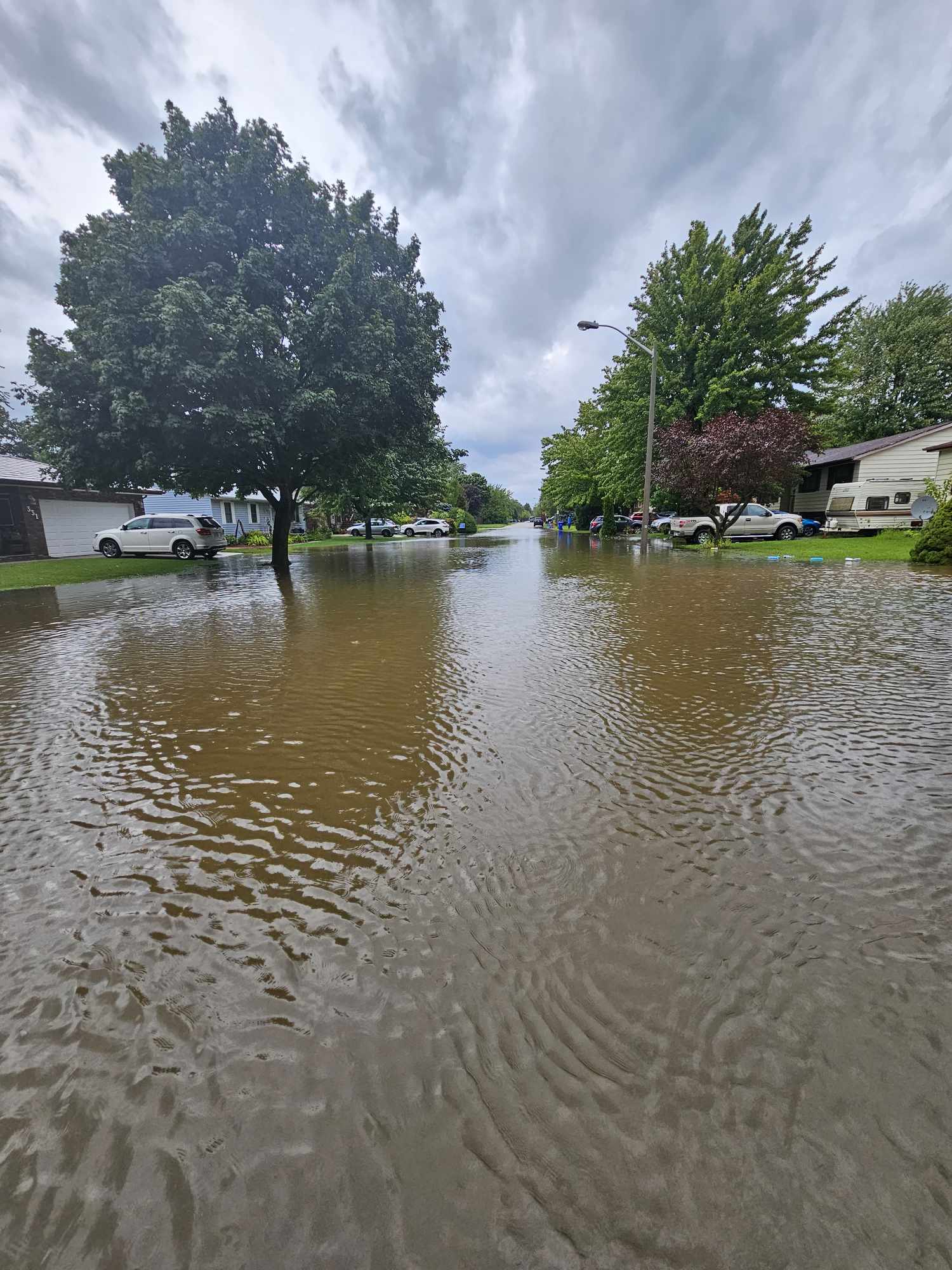 Flooding on Arthur Street South in Harrow following a heavy storm across Windsor-Essex. Aug. 24, 2023 (Photo: Adam Motruk)