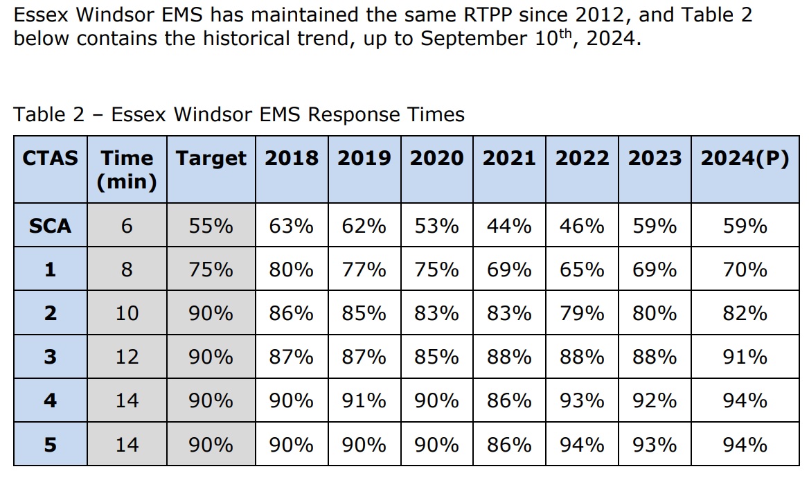 Essex-Windsor EMS hit the target 59 percent of the time in 2023 and, as of early September, is at that same level in 2024.