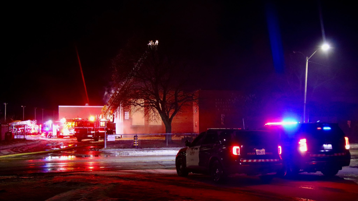 "The fire is suspicious, there was no hydro to the building," he said. "It appears somebody or someone, or something set the wooden stage on fire inside the building and that fire worked up the wall and into the attic space."