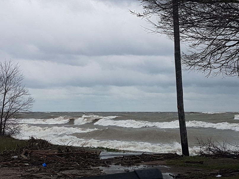 High winds create strong waves on the shoreline of Lake Erie near Point Pelee Dr. in Leamington (Photo submitted by Duayne Nantau)