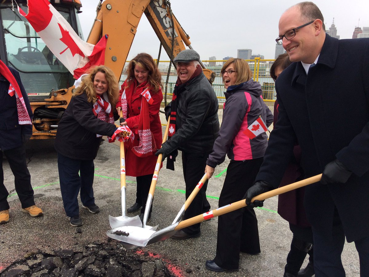 Official ground-breaking on the Great Canadian Flag Project at the foot of Ouellette Ave. January 25, 2017 (Photo by Teresinha Medeiros)