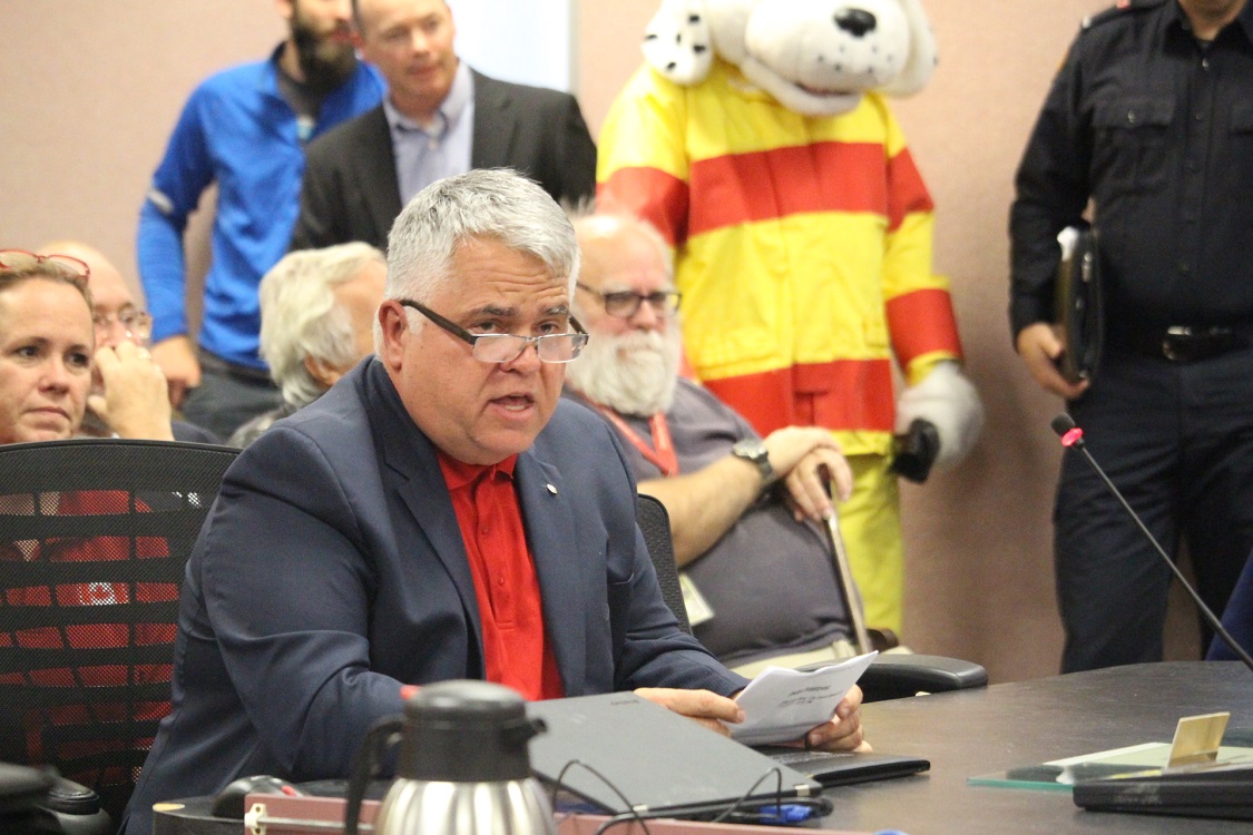 Great Canadian Flag project coordinator Peter Hrastovec makes an appearance at the regular meeting of Windsor city council on November 20, 2017. (Photo by Ricardo Veneza)
