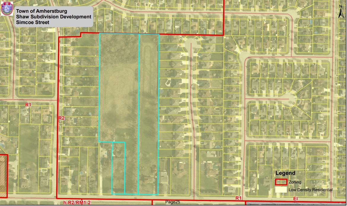 The proposed location of 49 new town-homes on Simcoe St. near Pacific Ave. in Amherstburg. (Photo via/www.amherstburg.ca)