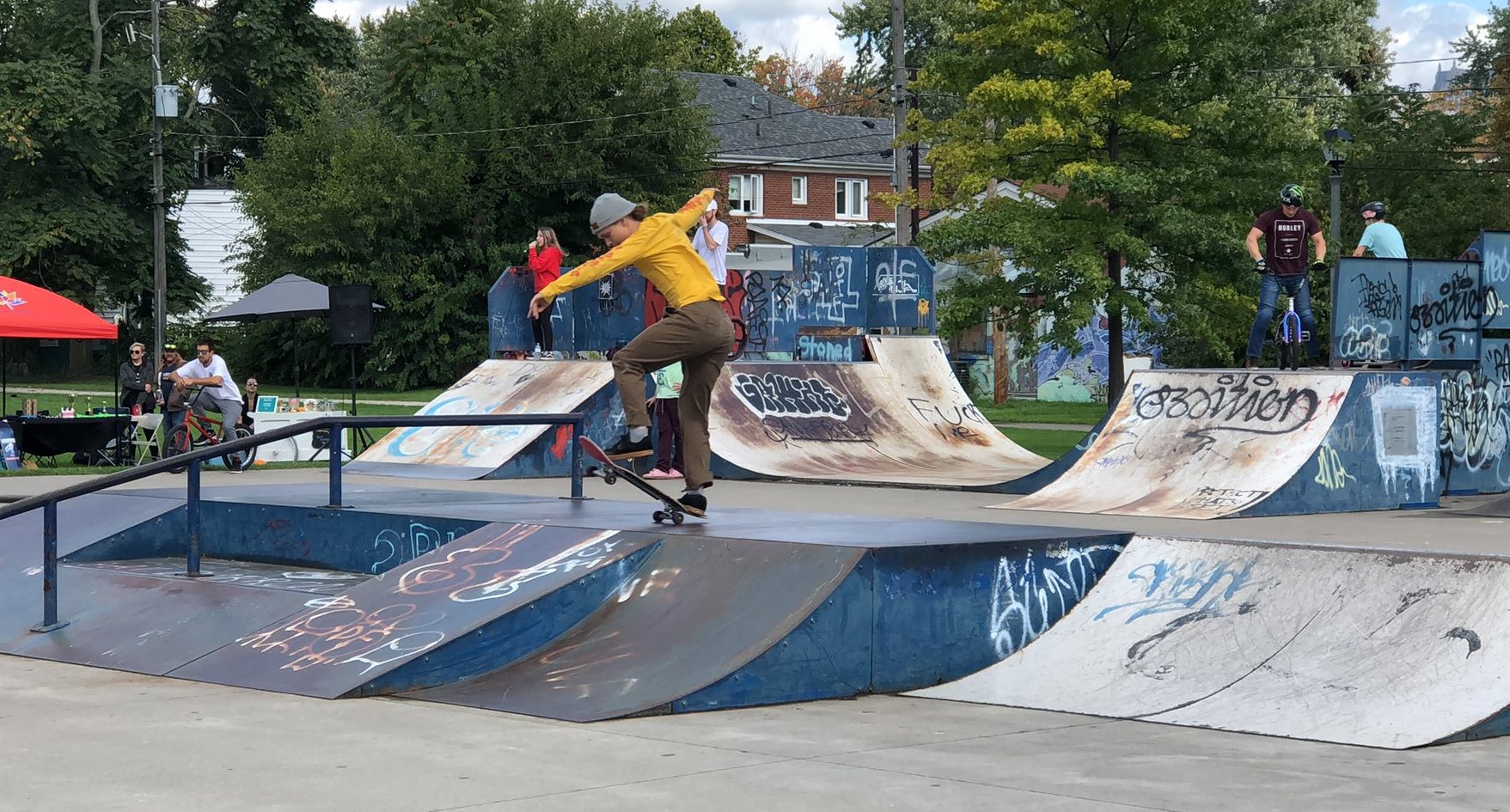 A local skateboarder negotiates a jump at the Atkinson Skate Park in west Windsor during a fundraiser for the Barron Bowl on Sunday October 6, 2019 (Photo by AM800's Gord Bacon)