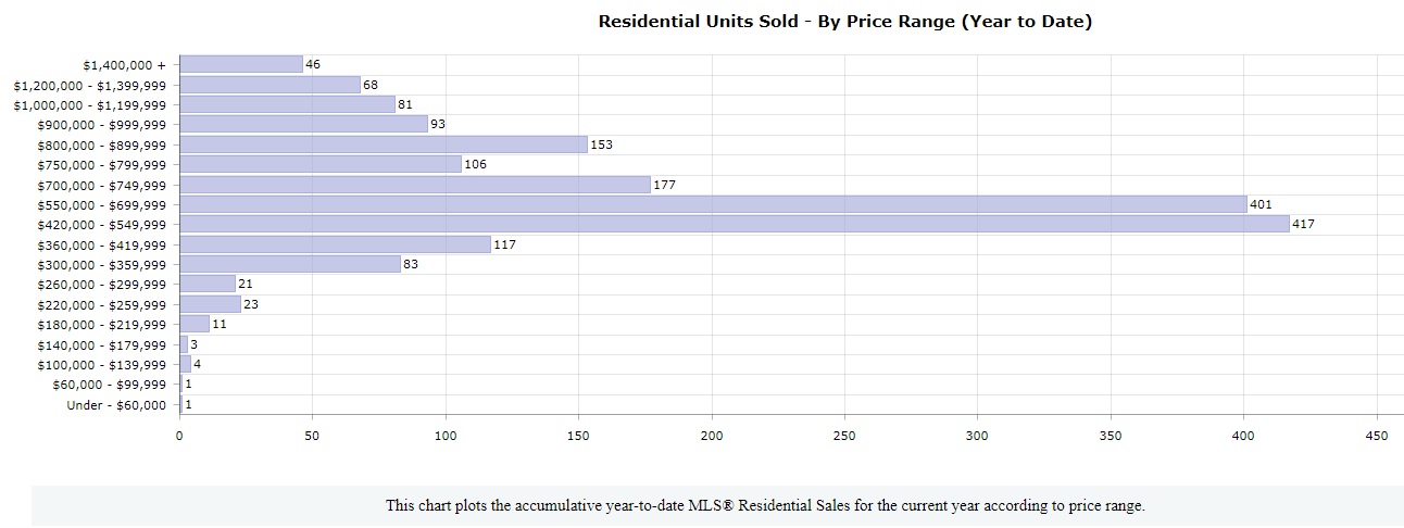 The second most sales were in the $550,000 to $699,999 price range, with 401 units sold.