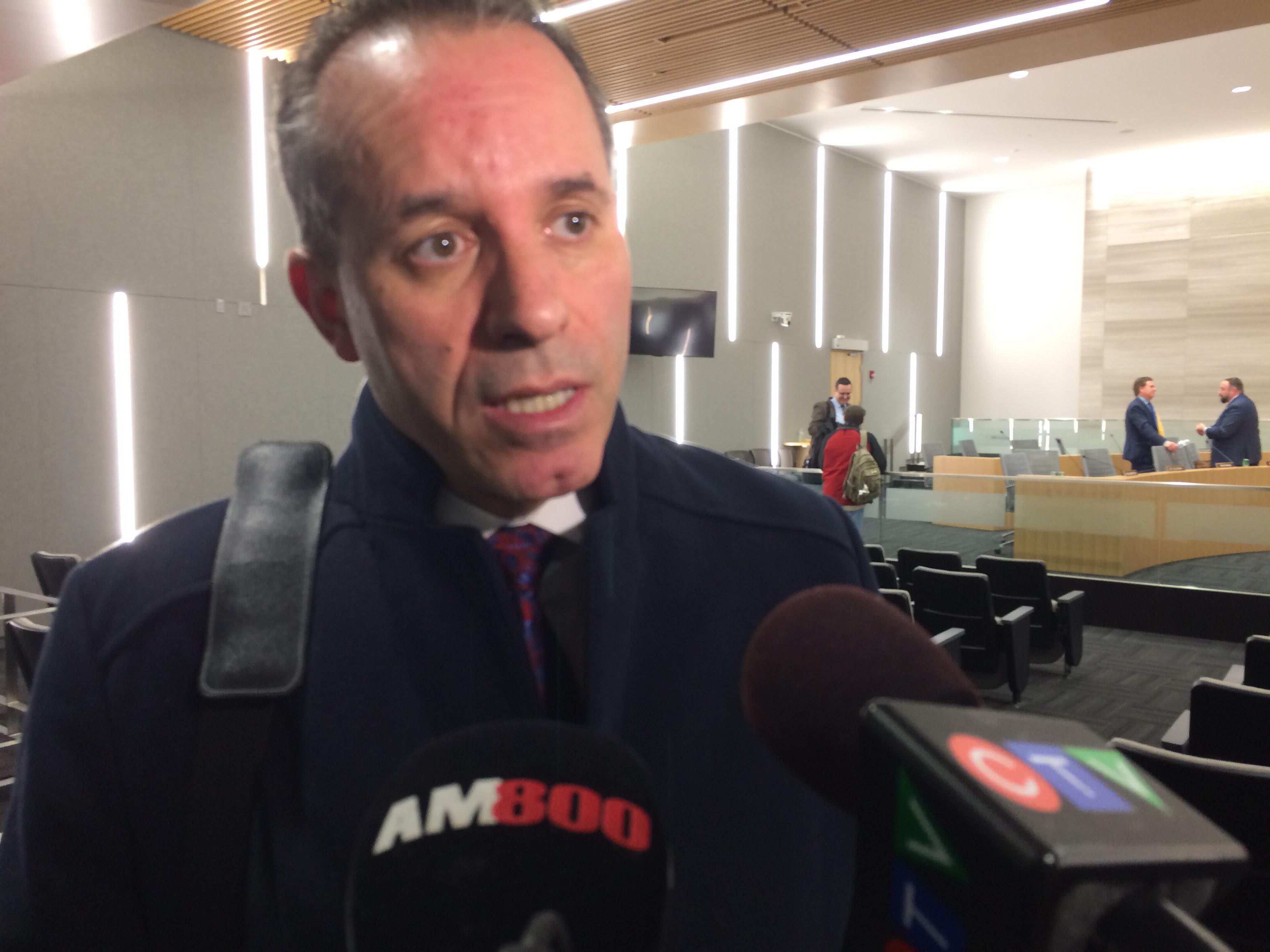 Vice President of External Affairs at Hotel-Dieu Grace Healthcare Bill Marra speaks with reporters after a city council meeting on March 4, 2019 (Photo by AM800's Zander Broeckel)
