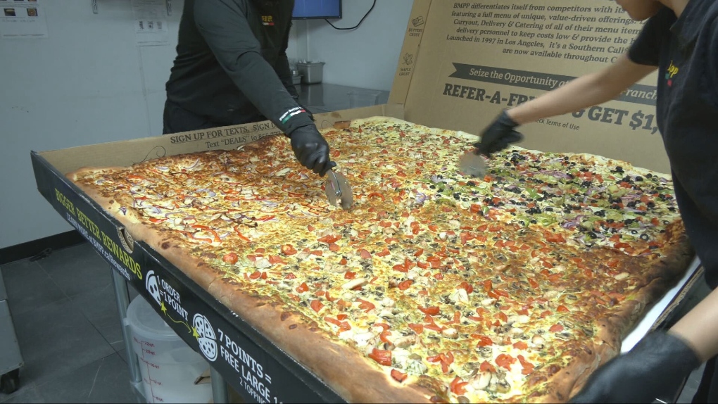 "We need at least three to four people to cook it. At least two people to deliver it," Nitish Sharma of Big Mama's and Papa's Pizza said. "It's a big pizza and it's a heavy one right? So you need to do some lifting."