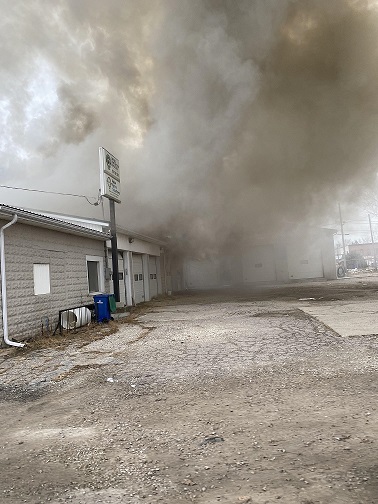 The blaze broke out at a former auto body shop on Centre Street, west of Walker Road according to callers to the AM 800 news centre.