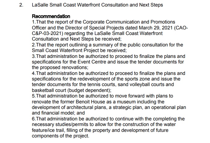 The Small Coast Waterfront Project returns to LaSalle council Tuesday night.