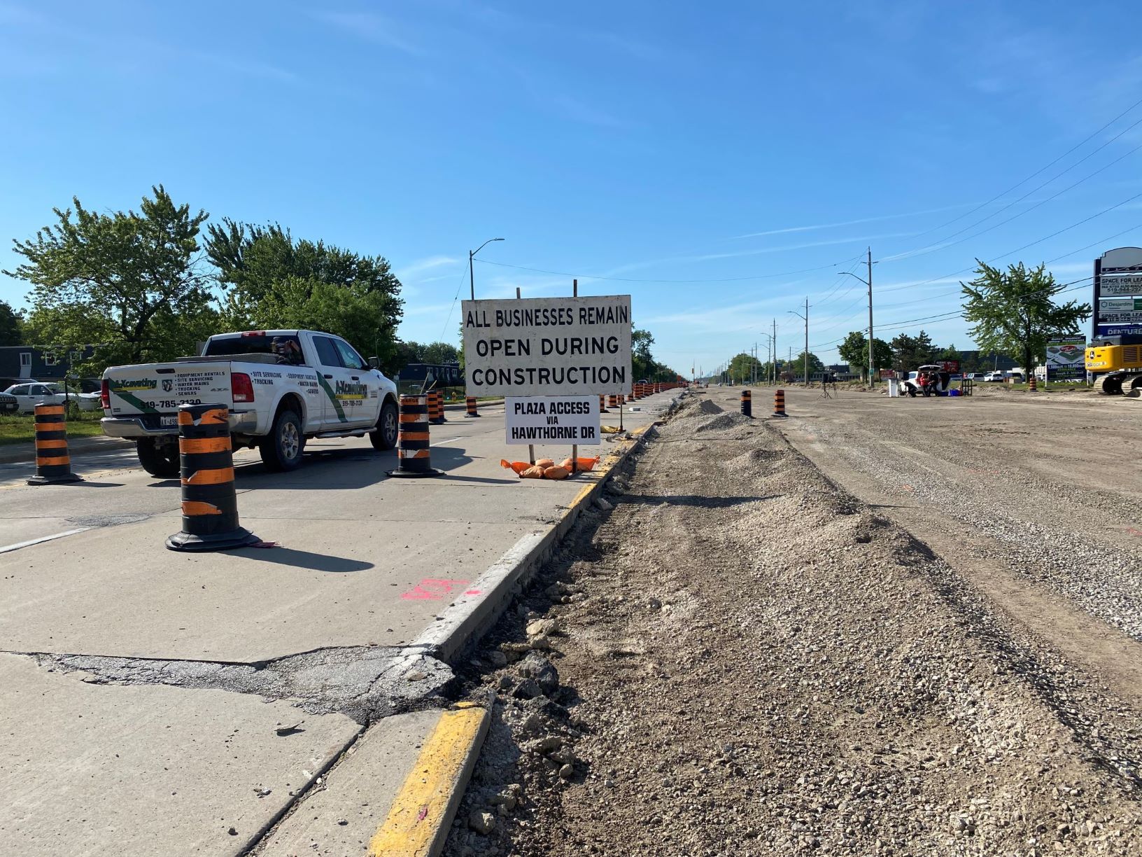 The left-turning lane from the northbound lanes to the plazas will remain closed during the winter. Access to the plazas will still be available via the Cantelon entrance and from the southbound lanes.