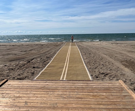 One of the project's notable features is the introduction of a new accessible mat system, specifically designed to improve accessibility for individuals with mobility challenges, families with strollers, and anyone seeking a smooth and safe pathway toward the water's edge.
