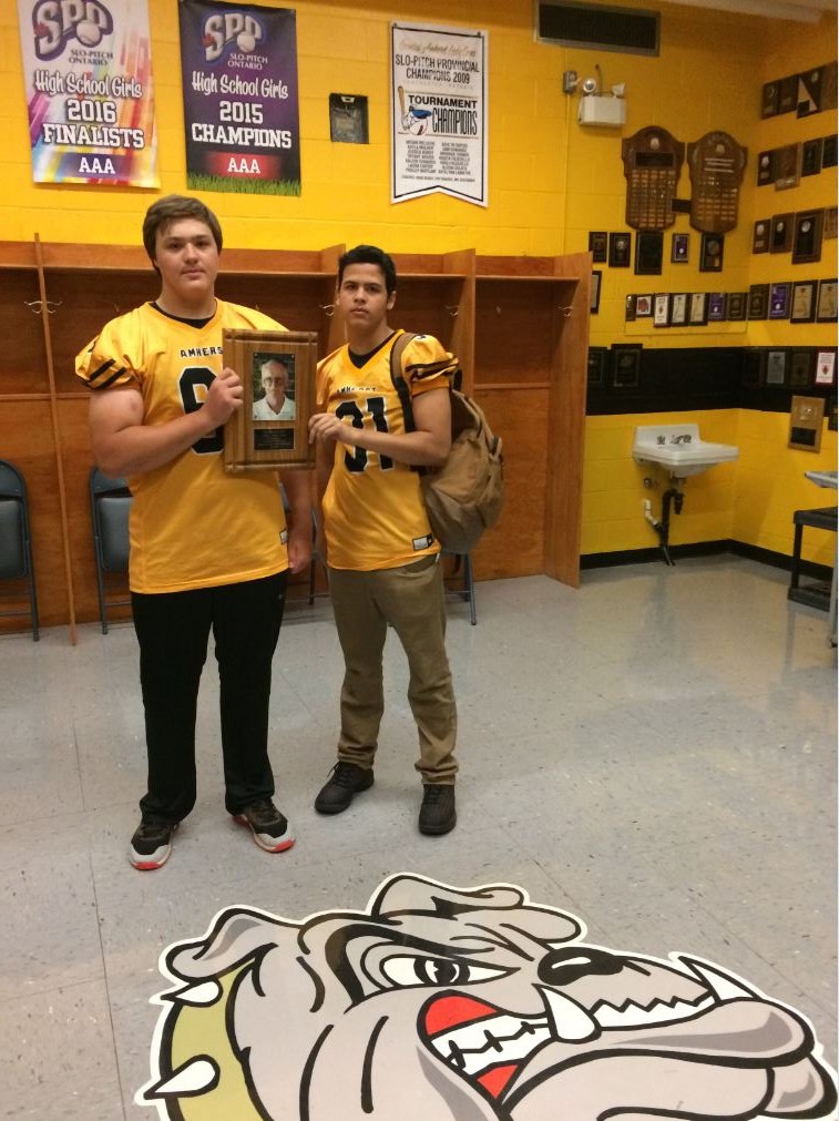 Gold dots the halls as football players wear their jerseys today in his honour.