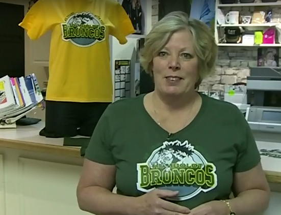 Owner of Silver Stitch Embroidery Karen Cichon, speaks with CTV Windsor about merchandise being sold to support Humboldt, Saskatchewan. April 10, 2018 (Photo courtesy of Sacha Long/CTV Windsor)