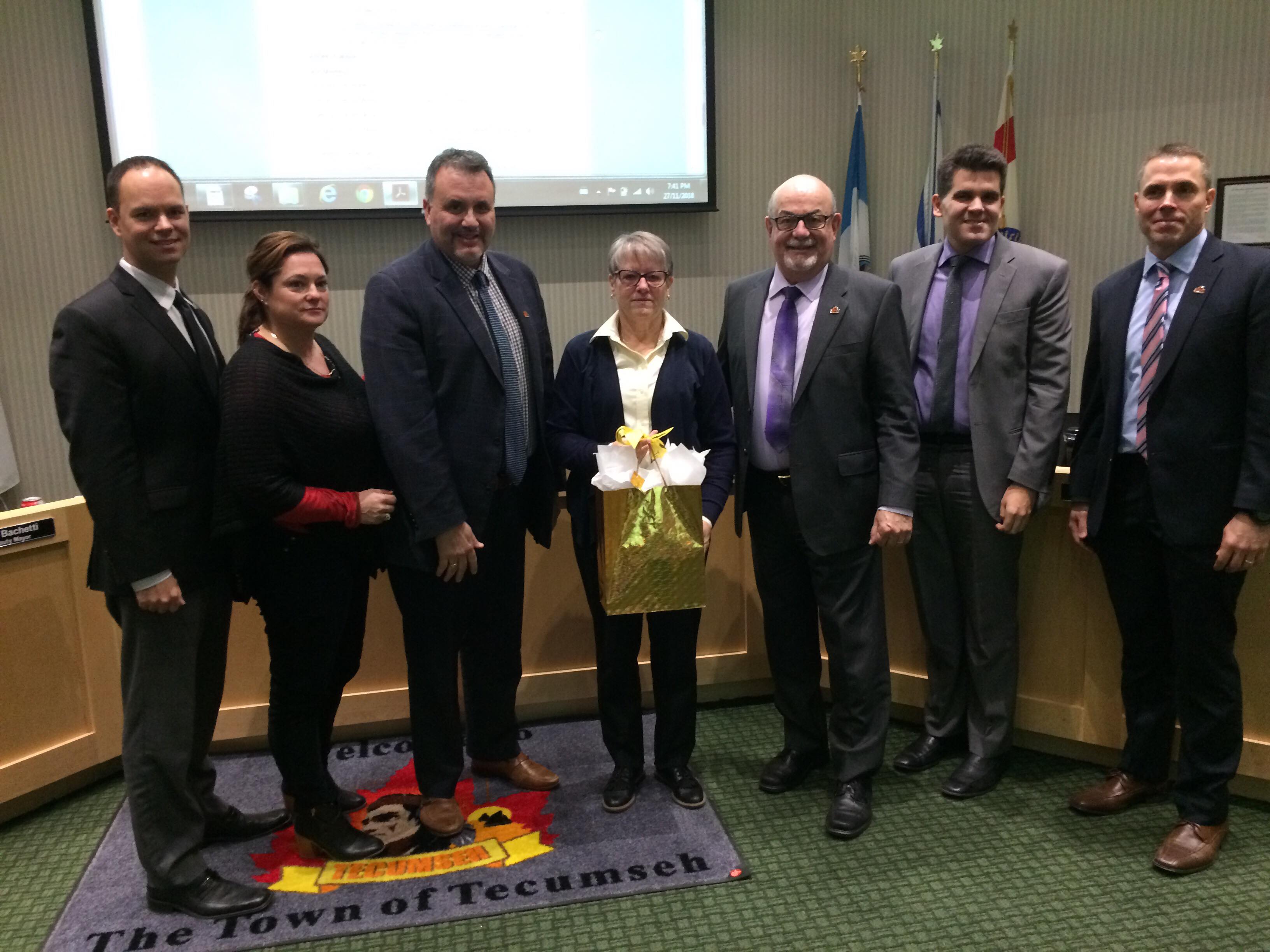.@TownofTecumseh Council giving councillor Rita Ossington a standing ovation for her 15 years of service to the town #cklw @AM800News pic.twitter.com/RYD1zRgWkb