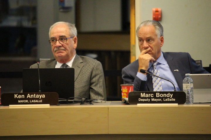 LaSalle Mayor Ken Antaya (left) and Deputy Mayor March Bondy (right) attend the 2017 budget meeting for the county on February 1, 2017. (Photo by Ricardo Veneza)