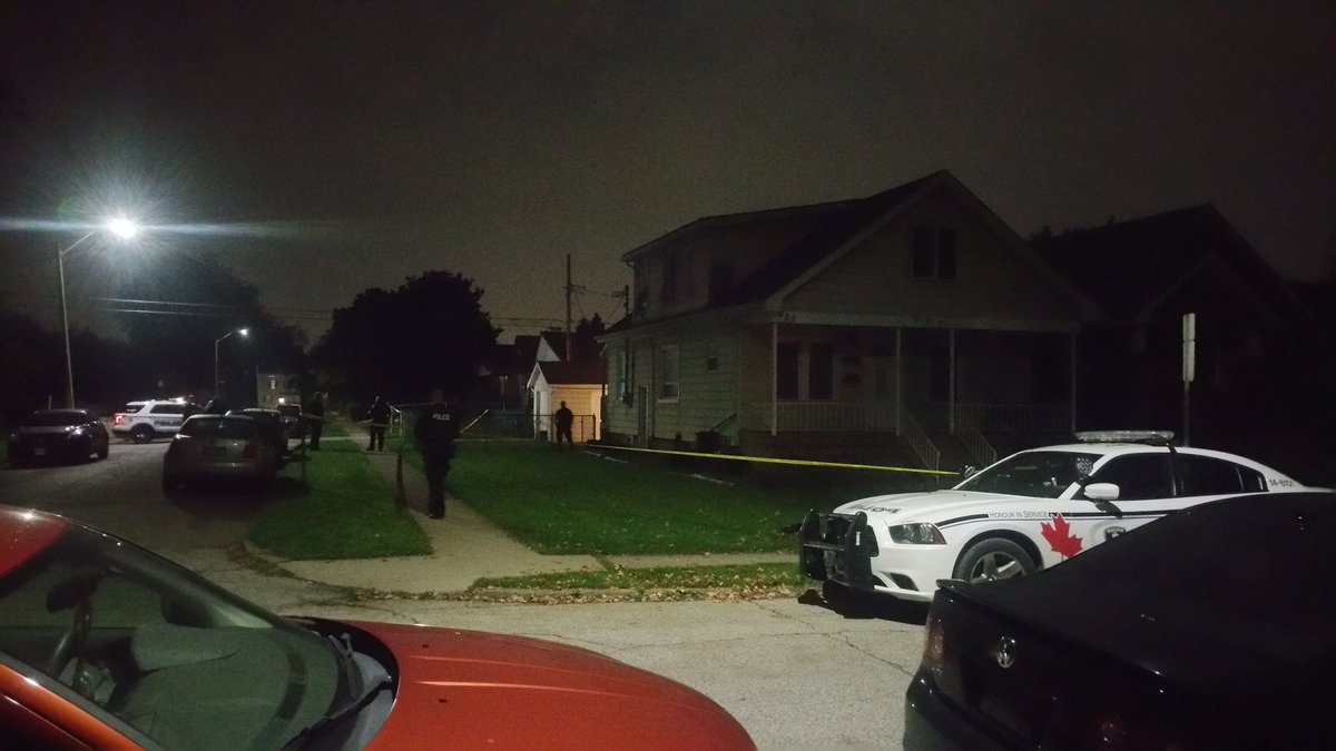 Windsor police at crime scene on Curry Ave. near Laing St. (Photo by Teresinha Medeiros)