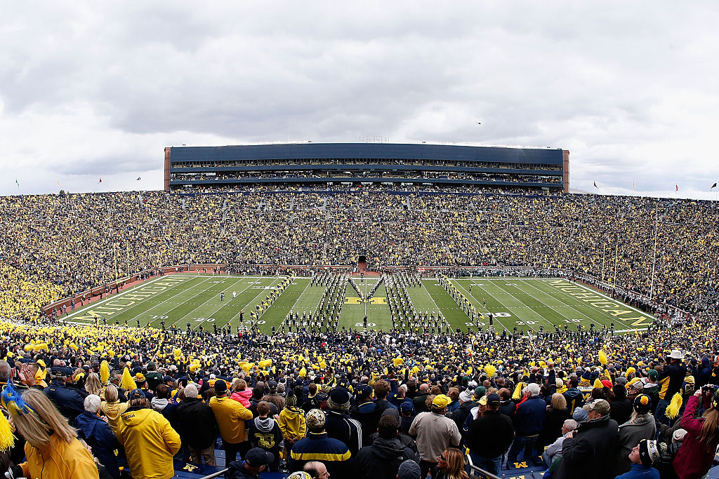 The Michigan Wolverines marching band performs before the college football game against the Michigan State Spartans at Michigan Stadium in Ann Arbor, Michigan. (Photo by Christian Petersen/Getty Images)