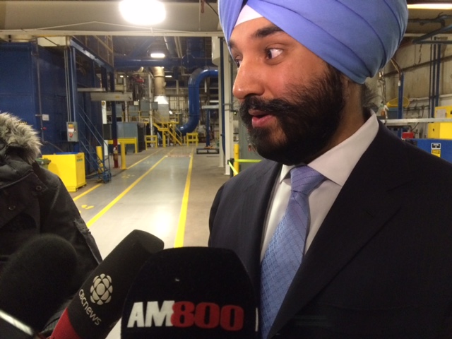 Federal Minister of Innovation, Science and Economic Development Navdeep Bains at Nemak in Windsor (photo by AM800's Peter Langille)