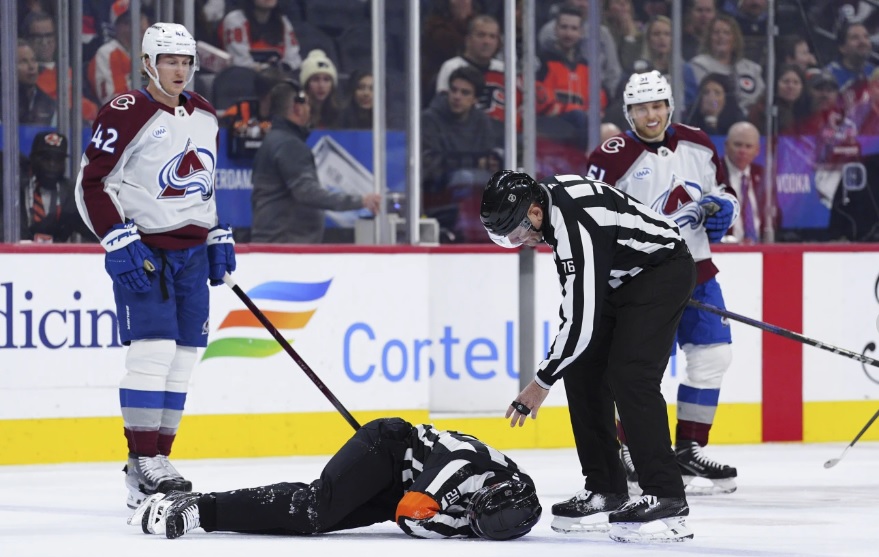 Referee Mitch Dunning was taken off the ice on a stretcher after a collision with defenseman Josh Manson during Colorado Avalanche vs. Philadelphia Flyers. https://t.co/zRclvb7p8y #COLvsPHI #GoAvsGo #LetsGoFlyers pic.twitter.com/QCJ45TVwPf