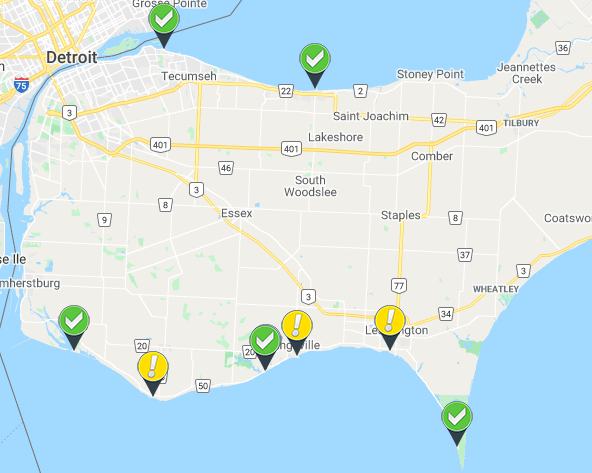 Beach status map with July 13, 2021 testing results. (Image courtesy of WECHU)